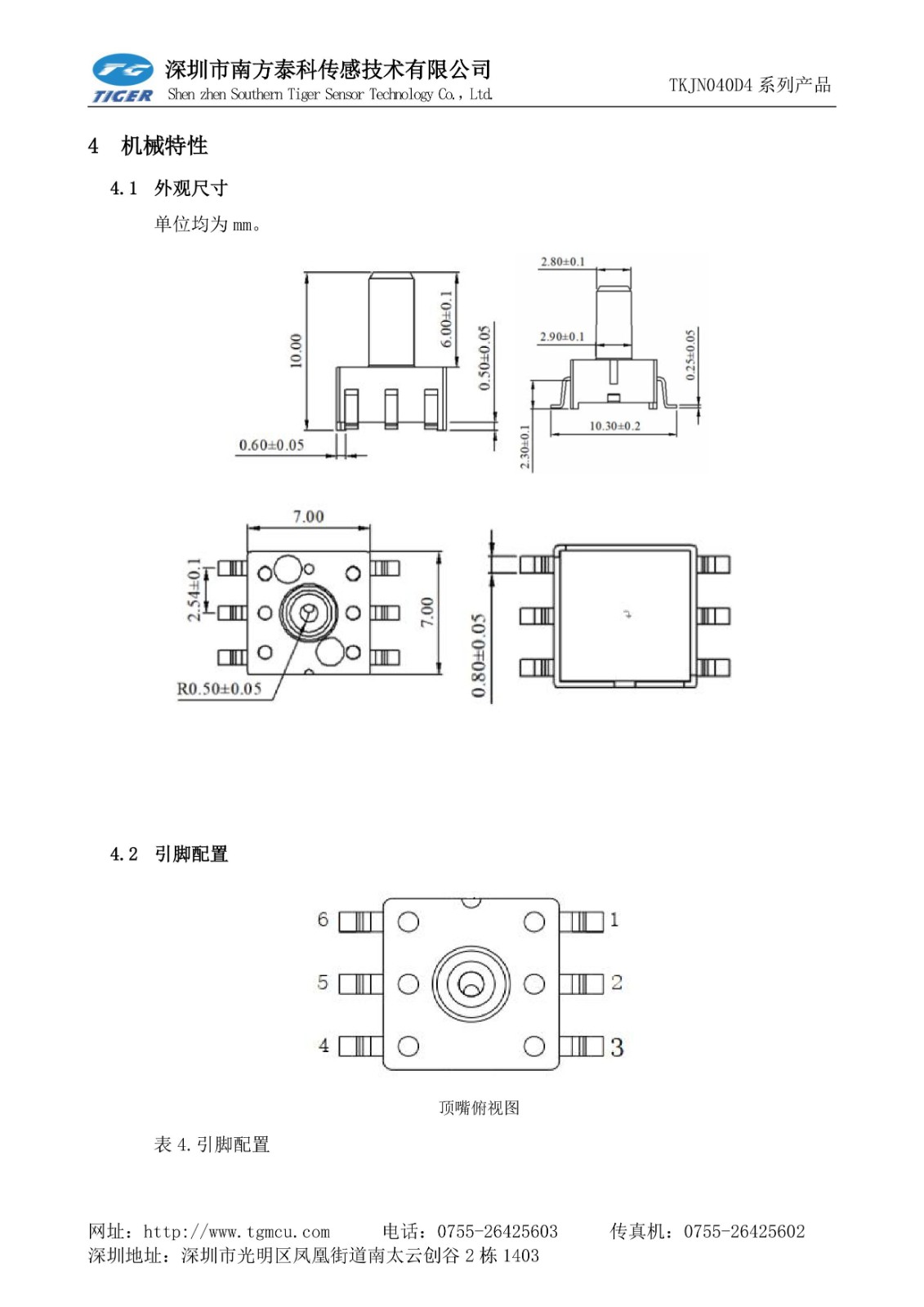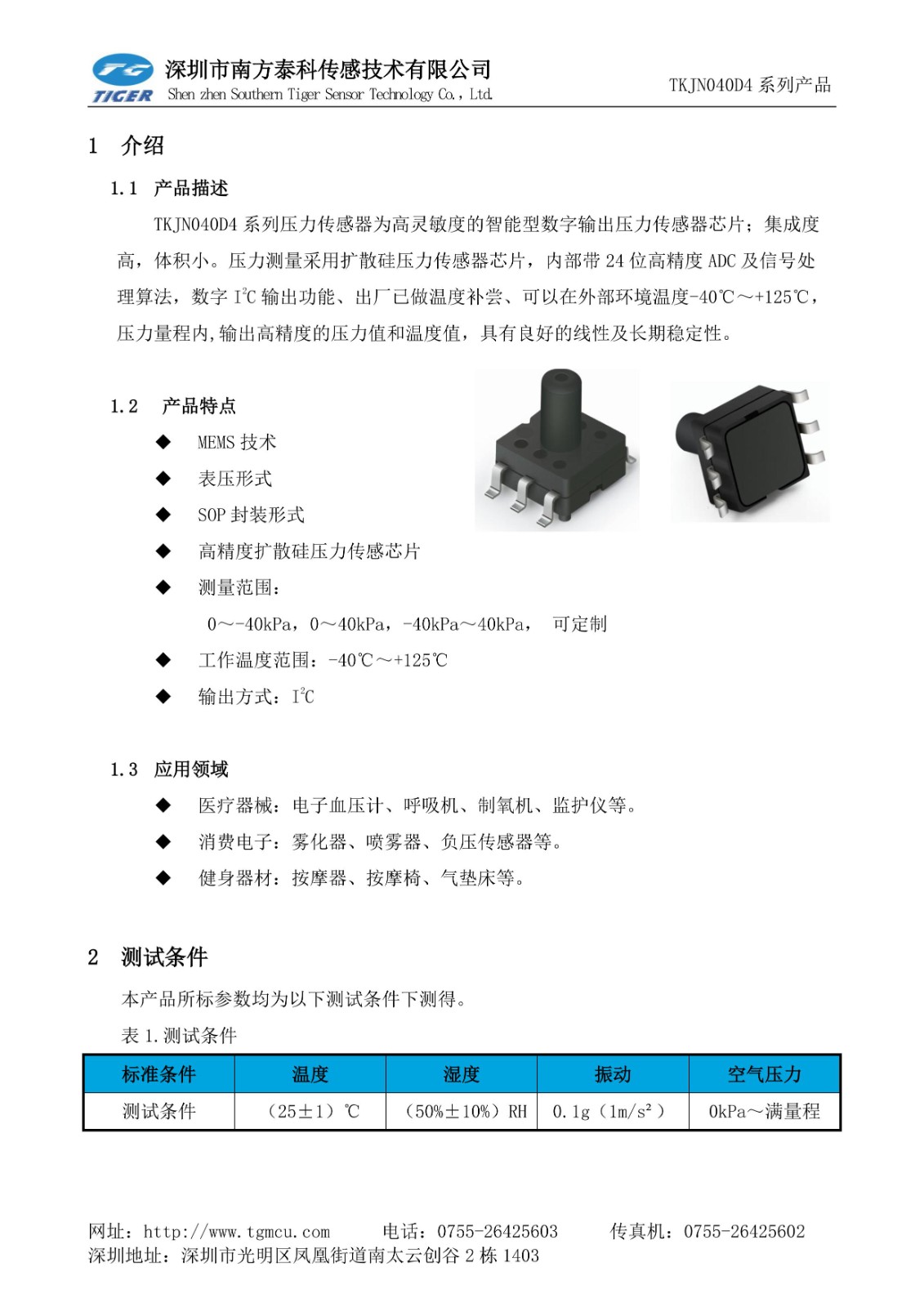 南方泰科醫(yī)療康復(fù)儀器按摩器件專用數(shù)字壓力傳感器TKJN040D